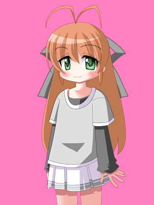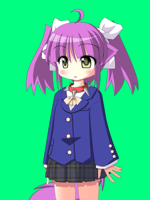 服はブレザーで、ノーマルな目で紫髪のセミロングのツインテールで犬耳+犬尾でどんくさい感じのキャラ