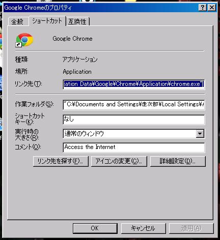 そんなときはChromeのショートカットを右クリック⇒プロパティでも確認できる。