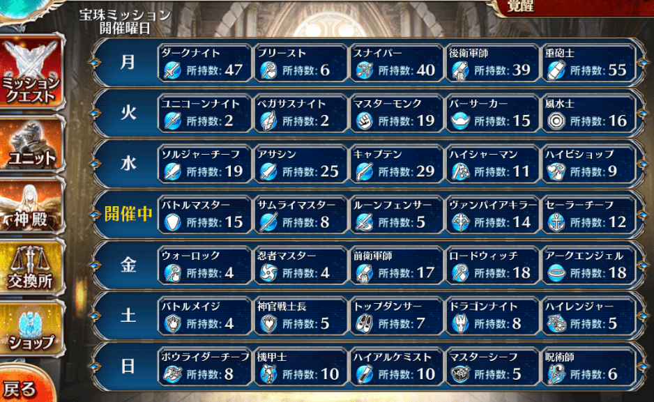 よく使うクラスや重要度の高いクラスの宝珠はなくなりがち。