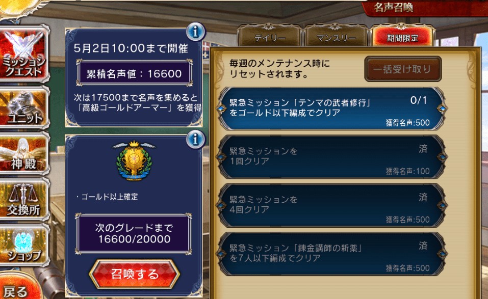 1.緊急ミッション『アルケミスト・ドクトリン』が終了間近