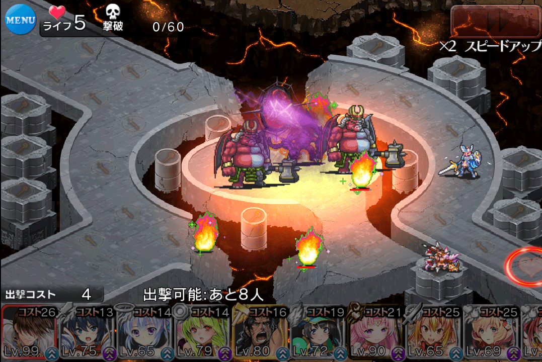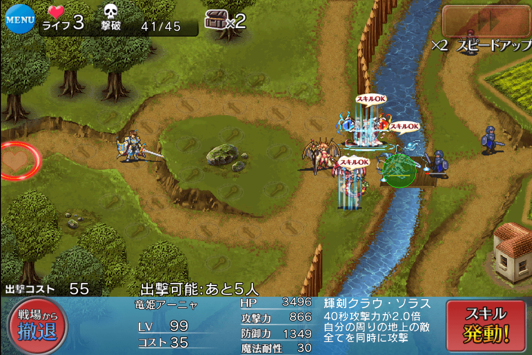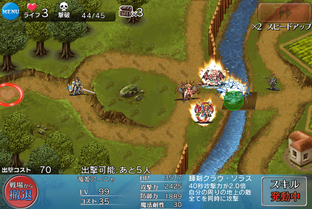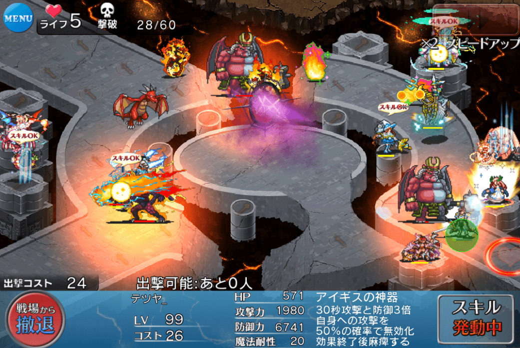 攻撃を集中させて一瞬で倒せるような他の配置を考えないと…。
