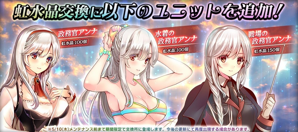 ・交換所に期間限定で各衣装のアンナを追加