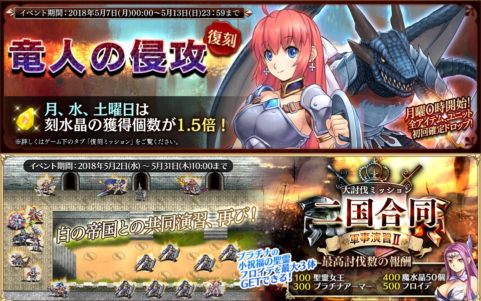 同時に復刻ミッション『竜人の侵攻』も開催するね。