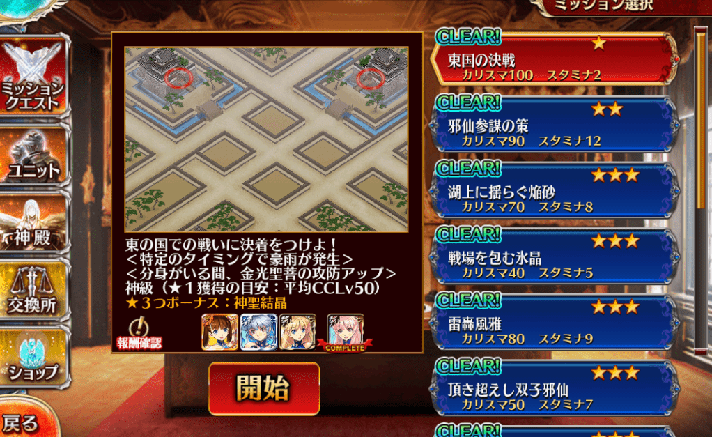 最後の「東国の決戦」の★3はちょっと無理な感じがするかな。