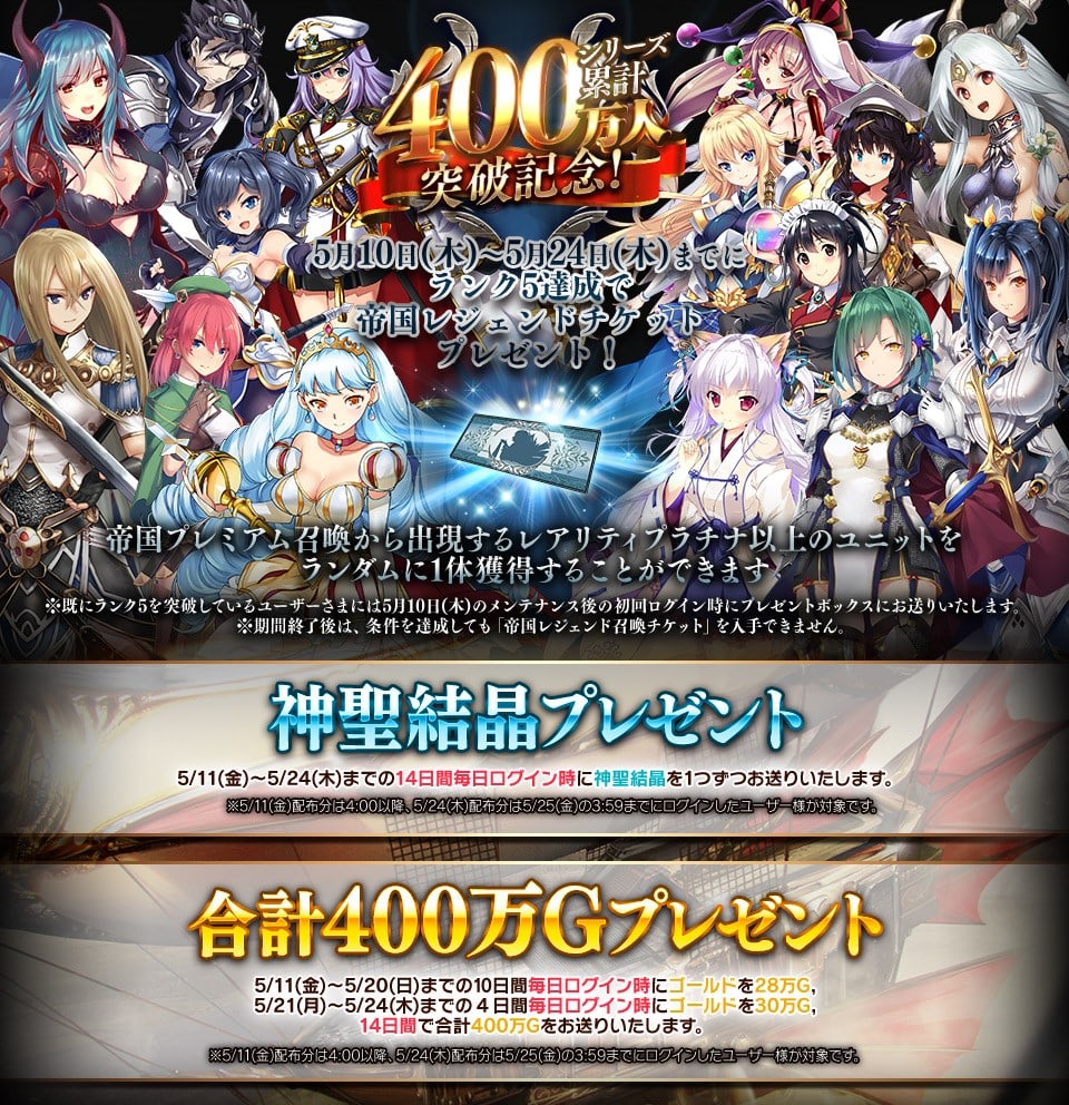 ・期間限定で『帝国レジェンド召喚チケット』をプレゼント