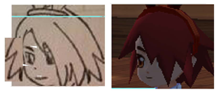 髪の毛率を上げてみた。(向かって右側の髪を反転コピペ)