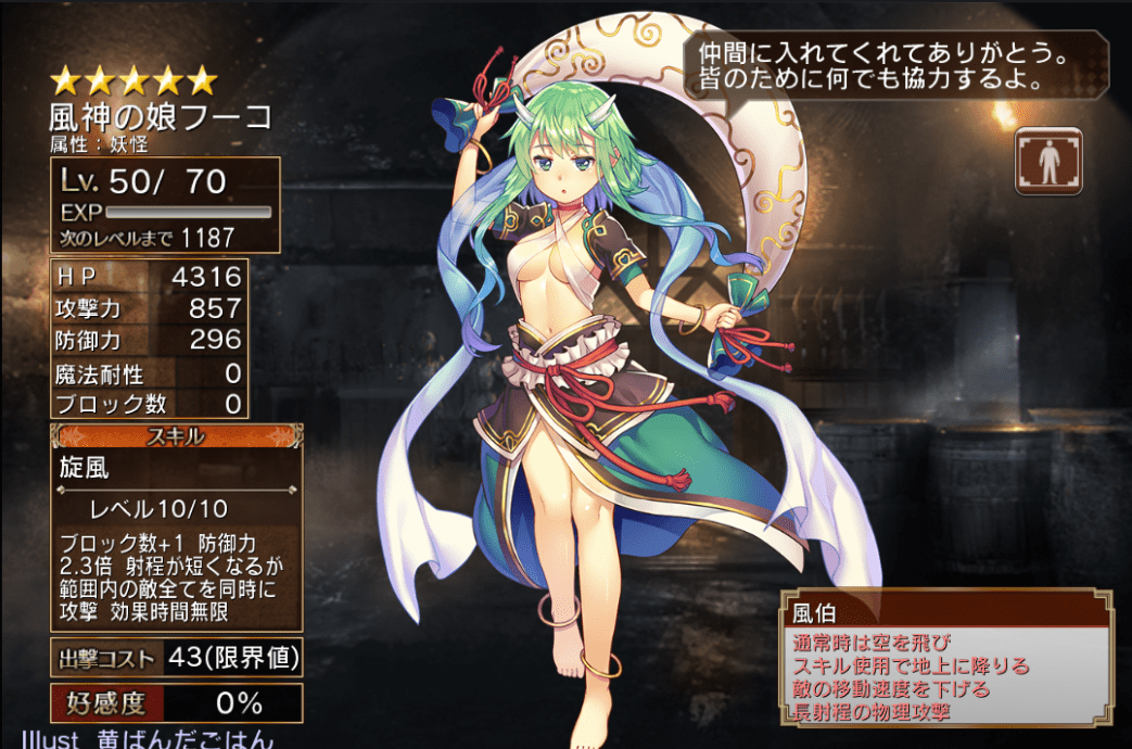 新クラスである風伯は性能は仙人とウィッチを足して二で割ったようなクラス。