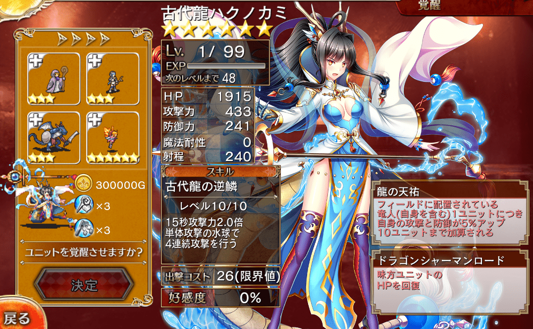 手持ちのドラゴンシャーマンの覚醒アビリティが同族強化に対してハクノカミは自身の強化。