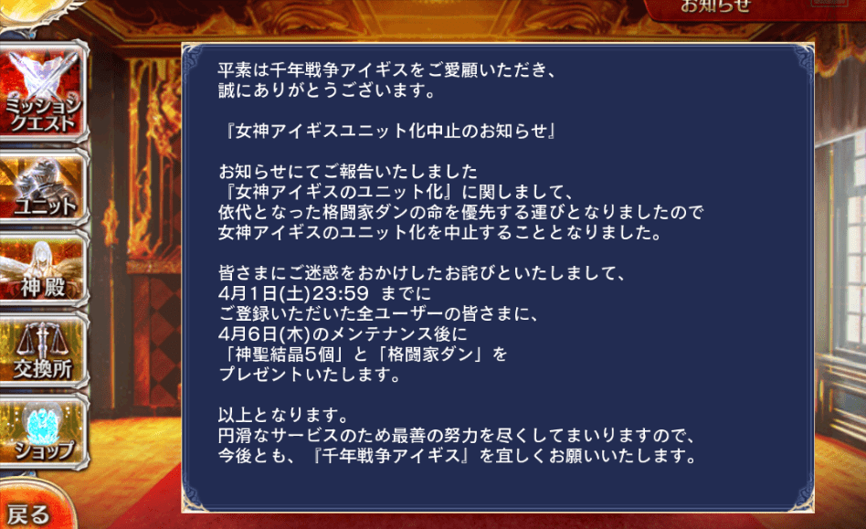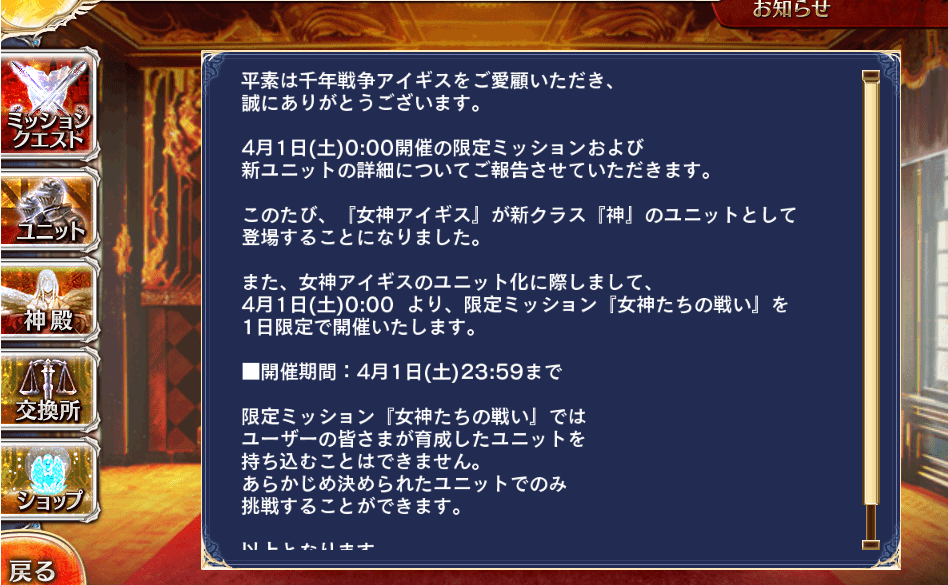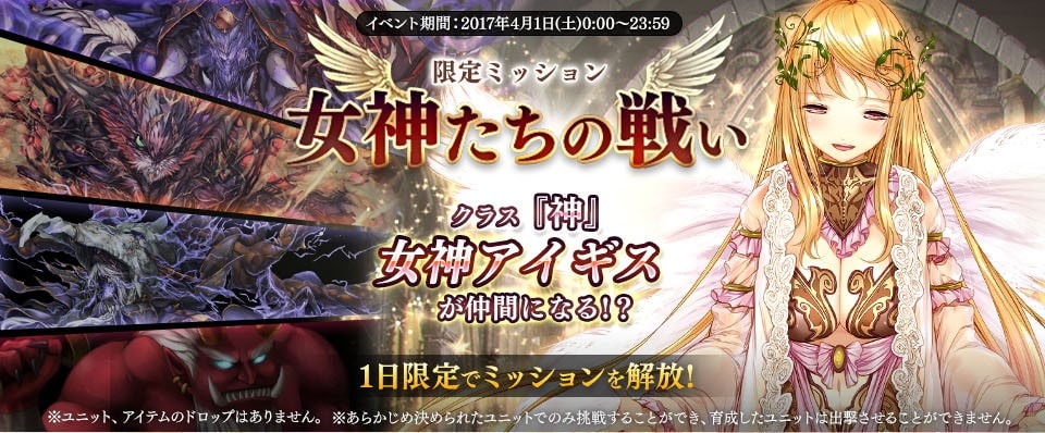 アイギスにおけるエイプリルフールは女神アイギスのユニット化!
