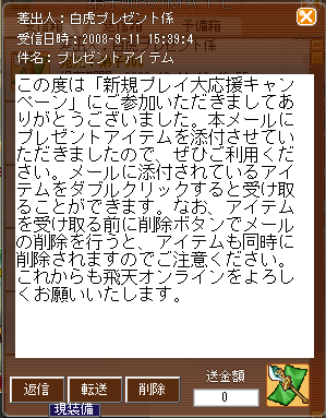 飛天では新規プレイ大応援キャンペーンが実施されてる。