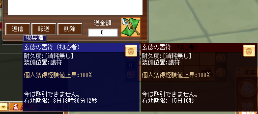 今装備しているのは玄徳の霊符(15日)
