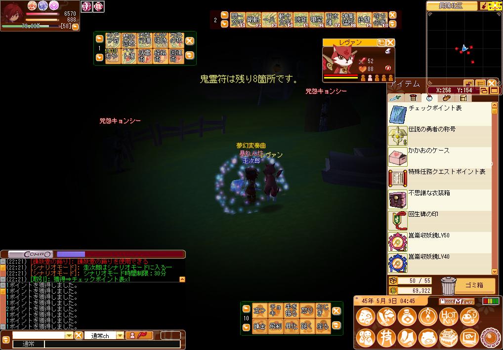 妖魔を倒したり、鬼霊符を燃やすとポイントが入る。