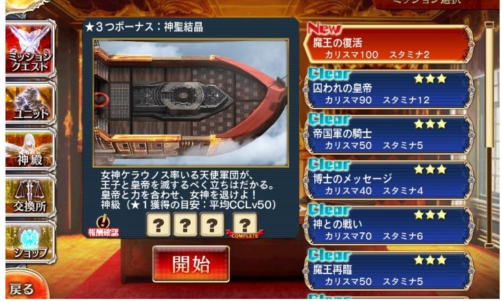 常設のストーリーミッションと同じくカリスマ消費のみで挑戦できる。