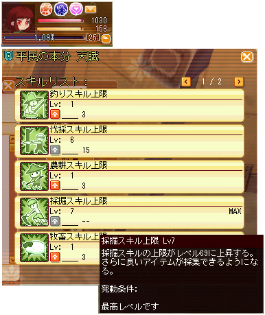 もう少し平民レベル上げれば伐採スキル上限もMAXに出来そうだw