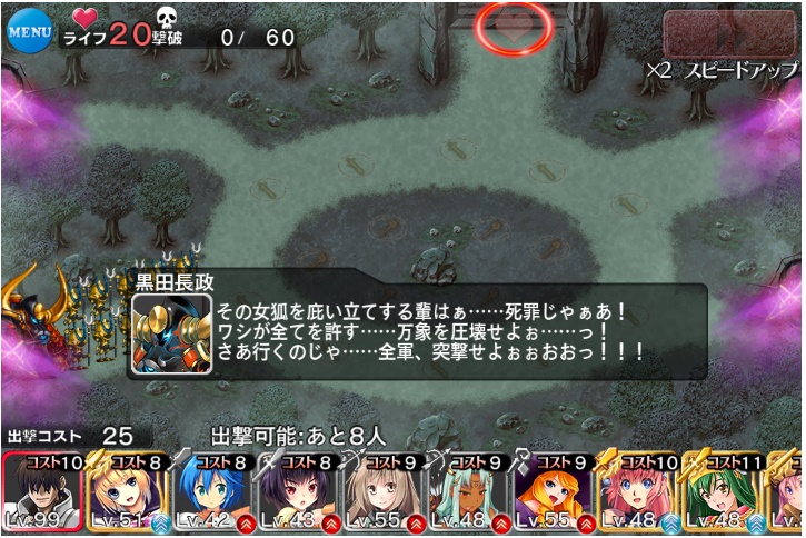 フェロモンで雄を意のままに操る能力の回避から、最後には王子含む男ユニットの出撃不可だった。