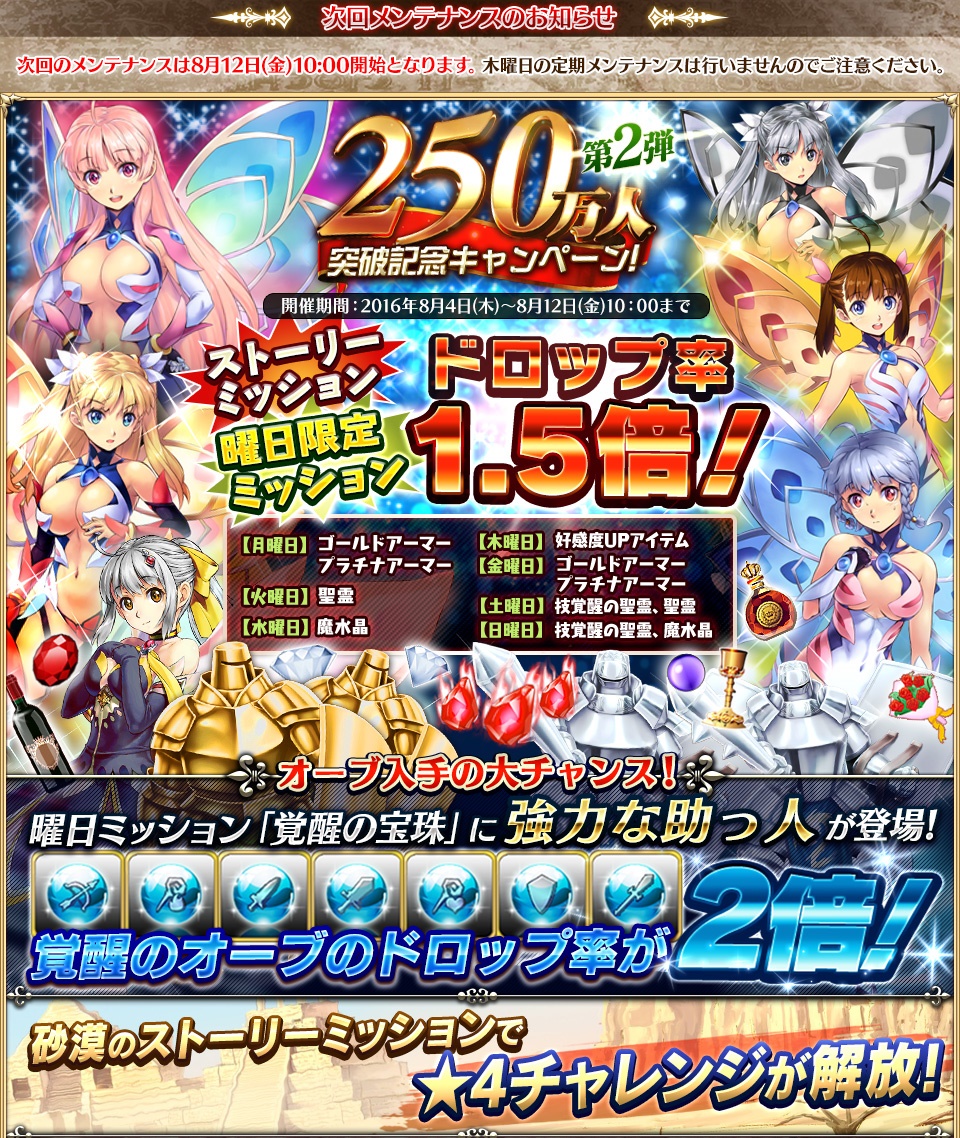 後半にはもう少し効率の良いミッションが用意されている可能性が高い。
