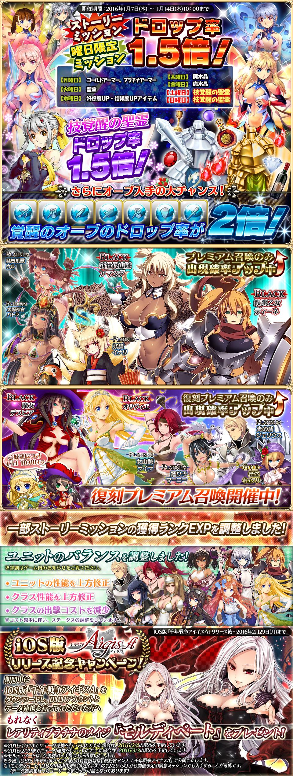 そんなわけかどうか知らないけども、アイギスは火曜日にメンテがあったよ。