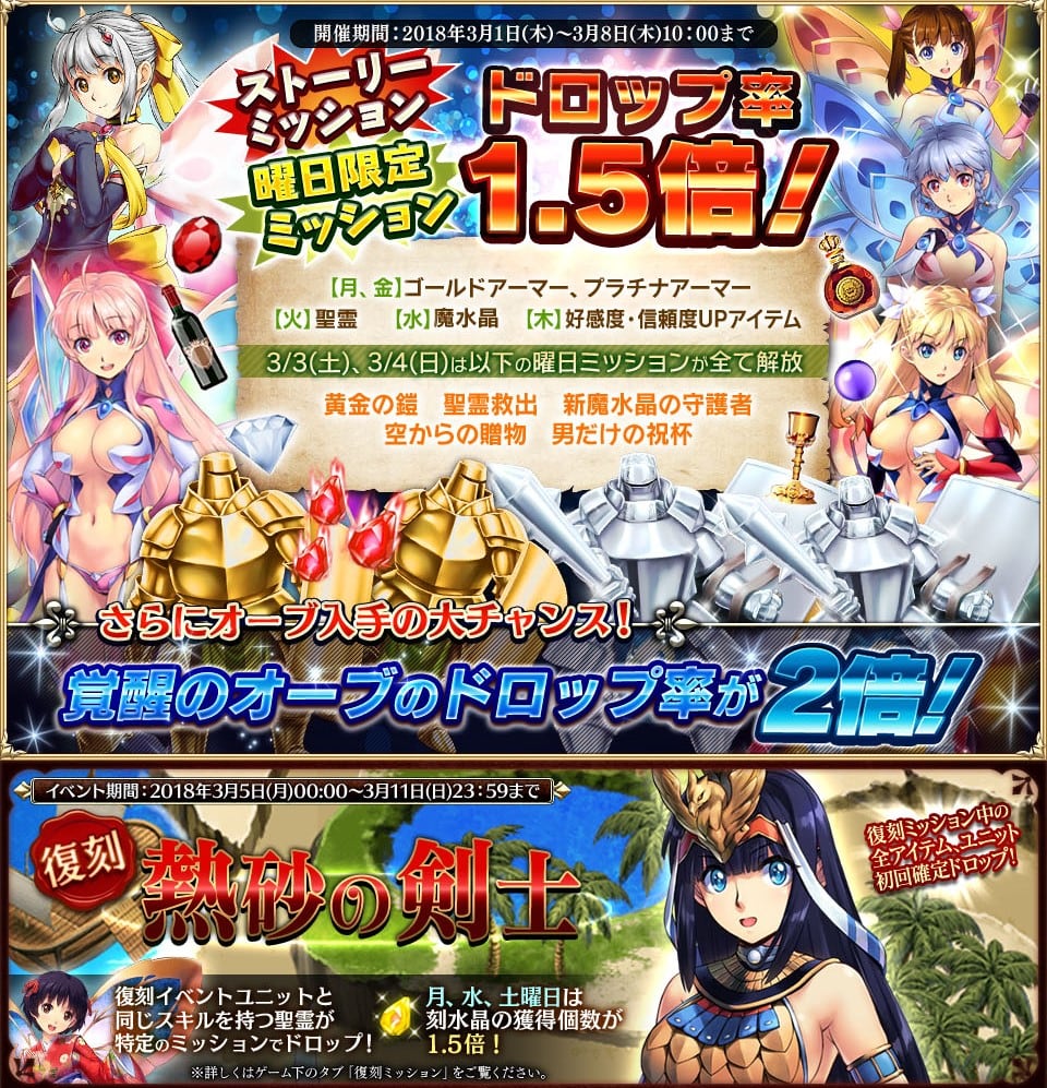 ・曜日ミッションのドロップ率1.5倍の開始