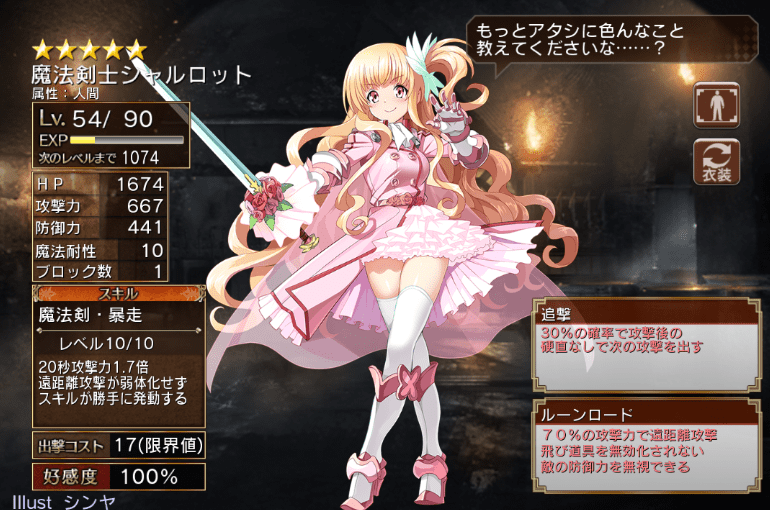 スキル覚醒で弱体がなくなるシャルロットにしてみればルーンデルヴァーの方が良かったかもね。
