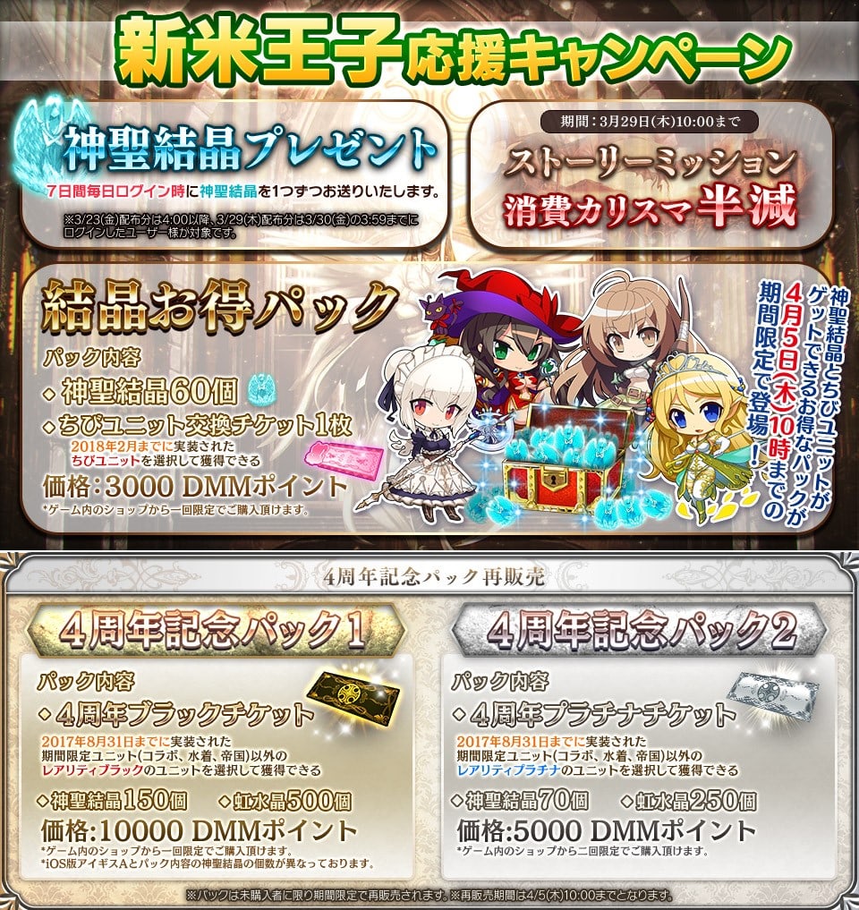 【期間】2018年3月29日(木) メンテンナンス後〜2018年4月5日(木) メンテナンス前まで