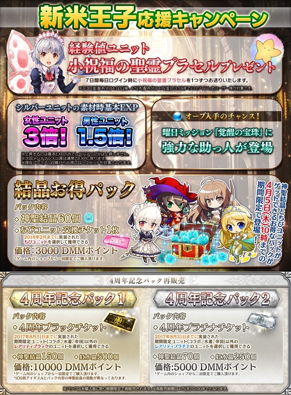 ・シルバーの女性ユニットの素材時の基本EXP3倍の開始。