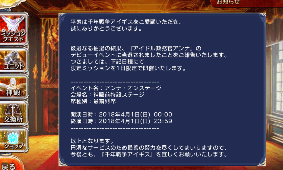 ※復刻ミッション『堕天使の誕生』は4月1日(日) 23:59まで。