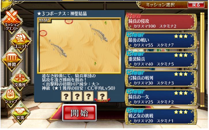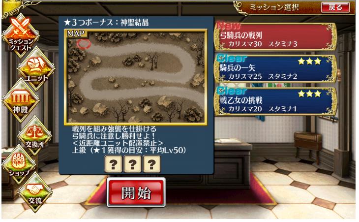 ミッション4:重装騎兵:上級 スタミナ5 カリスマ40