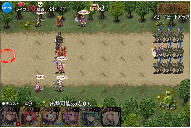ちょっと戦力過剰っぽく、もう少し弱いユニットでもいけるかも。