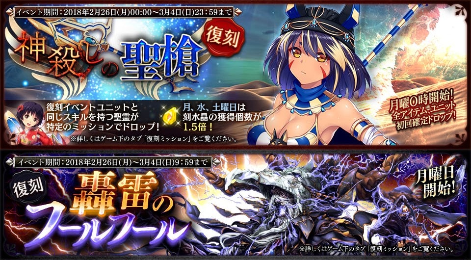 2018年2月8日(木)メンテナンス後 〜2月15日(木)メンテナンス前 まで
