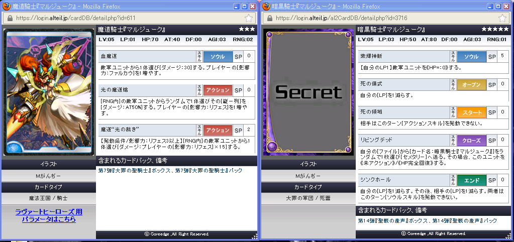 そして本家とモバゲーとではカードの名前とかレア度が多少違う。