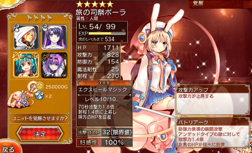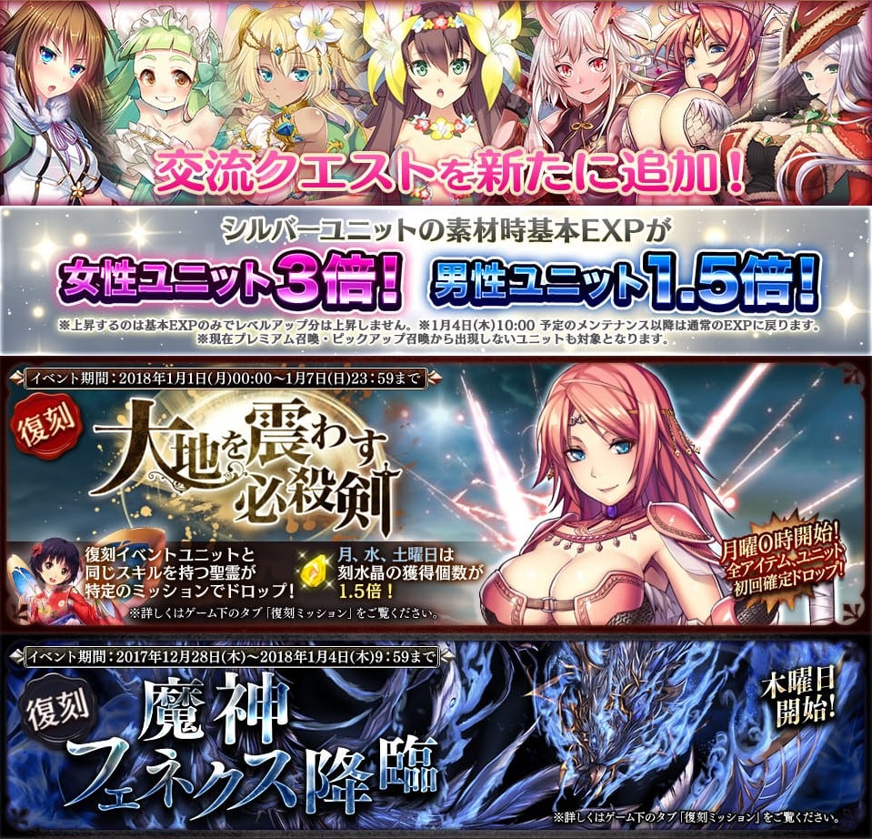 ・レアリティゴールド以上の女性ユニットの素材時の基本EXP3倍。
