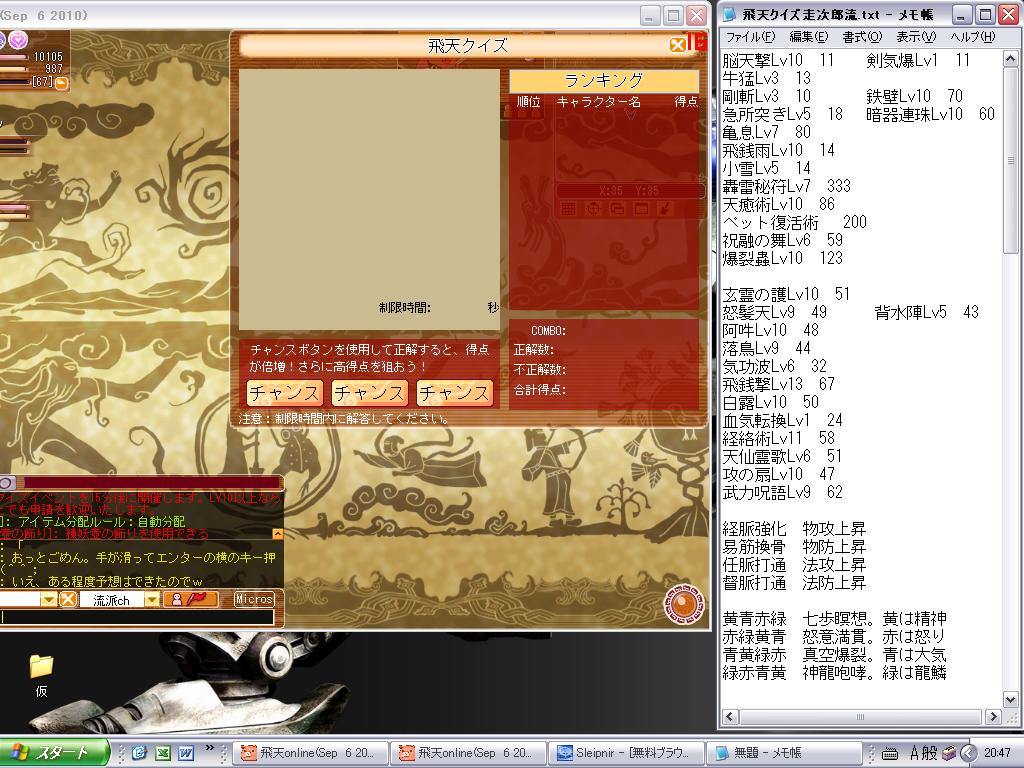 オレの場合は飛天の左が少し削れてしまうが、クイズのときはチャットできないし良いと願う^^;