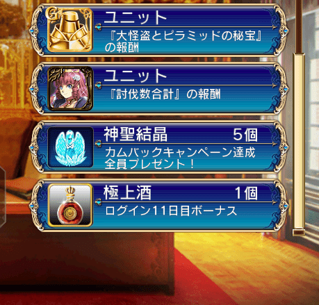 神聖結晶5個で行えるプレミアム召喚等が無料で1日1回(全10日分)行える。