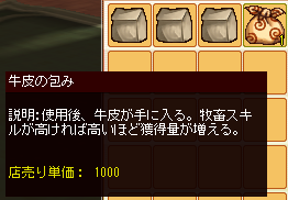 霊気の宝珠8個と交換できる牛皮の包みや水晶の包み。